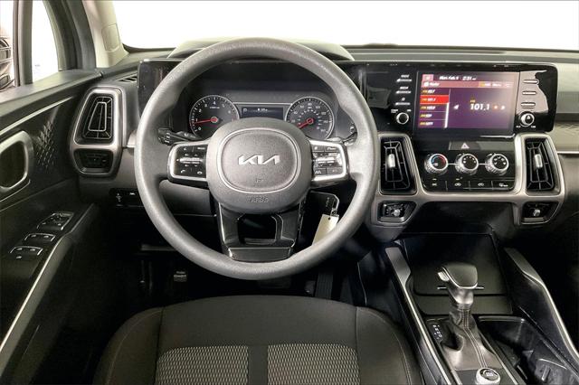 CARFAX One-Owner. Clean CARFAX. Ebony Black 2022 Kia Sorento LX FWD 8-Speed Automatic 2.5L I4 DGI DOHC 16V LEV3-ULEV70 191hp **CLEAN VEHICLE HISTORY REPORT** **ONE OWNER** Sorento LX 2.5L I4 DGI DOHC 16V LEV3-ULEV70 191hp FWD 7.0J x 17"" Alloy Wheels Apple CarPlay & Android Auto Exterior Parking Camera Rear Fully automatic headlights Radio: AM/FM Audio System Security system Speed control.Were confident we have the right price for you the right quality for you the right level of...